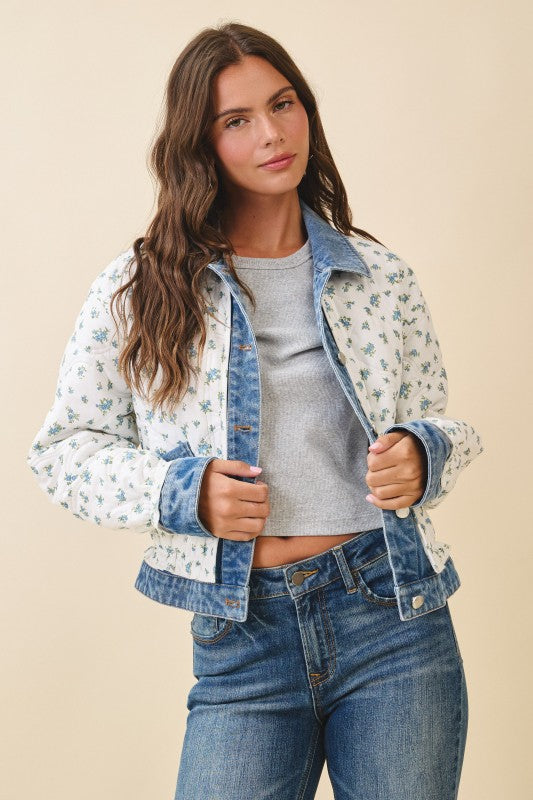 Floral Quilted Denim Trim Jacket